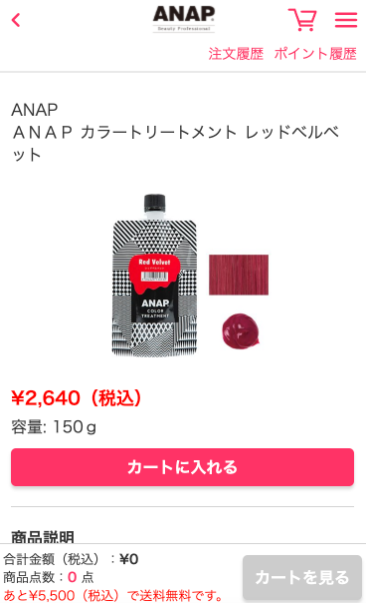 商品を選択すると、商品詳細ページが開きます。
