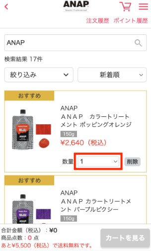 4.数量を選択してカートに入れる